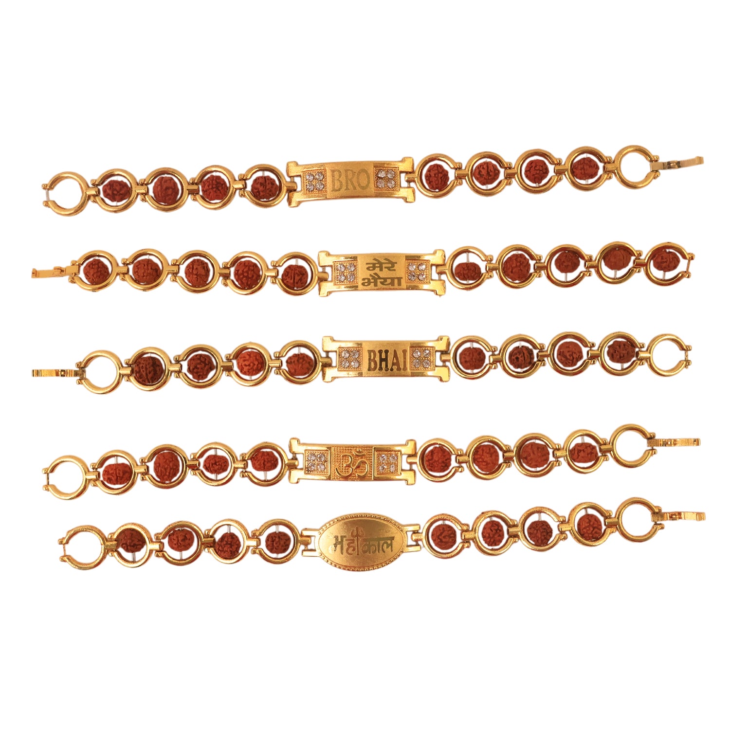 Gold Plated Designer Circular Bead Bracelet Rakhi For Brother (Mix Design  1 Pc) - Happy Price - Image 5