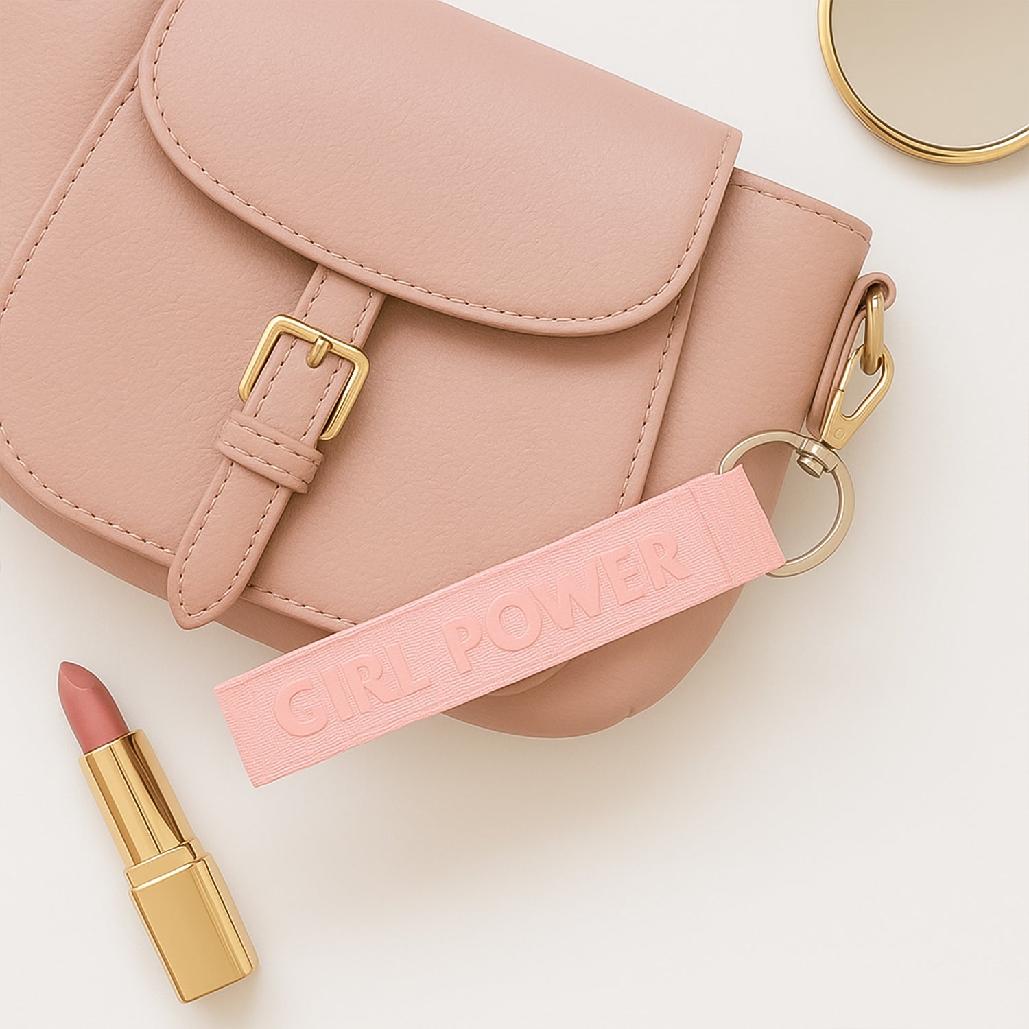 - Fabric Ribbon Keychain with "Girl Power" Print - Mix Color (1 Pc)