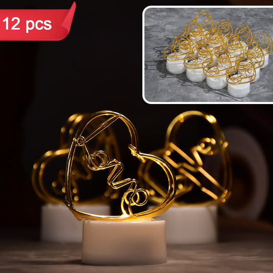 Set of 12 Heart-Shaped LED Flameless Candles - Multicolor Decorative Lights