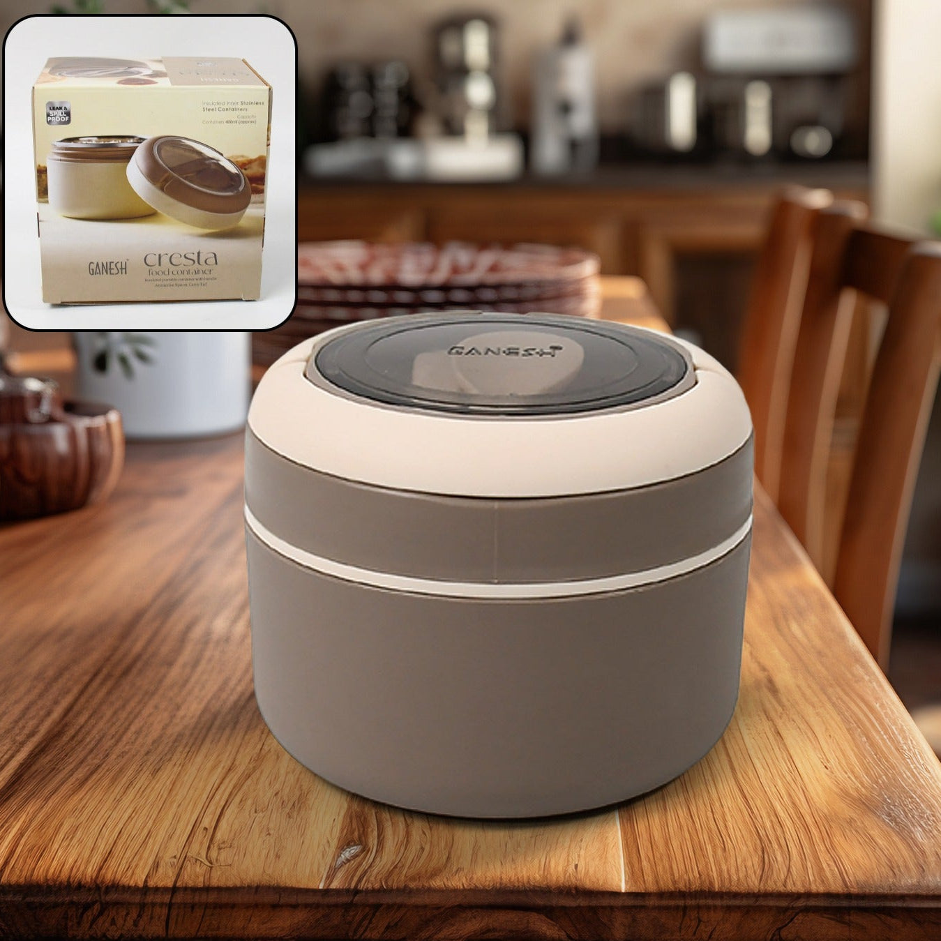 - Ganesh Cresta Insulated Lunch Box with Spoon - Airtight & Leak-Proof for Office/School (1pc)