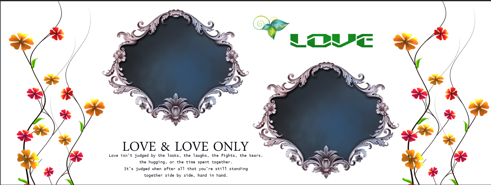 Transform your cherished memories into a tangible keepsake with this Custom Photo Print Ceramic Mug (11oz). Designed specifically for couples, this personalized gift features an elegant wrap-around design containing two ornate, Victorian-style silver frames ready to showcase your favorite photographs. The artwork is embellished with vibrant orange and red wildflowers climbing on delicate vines, alongside a stylized green "LOVE" motif. A touching sentimental poem titled "LOVE & LOVE ONLY" graces the bottom, making this the perfect choice for anniversaries, Valentine's Day, or romantic gestures.