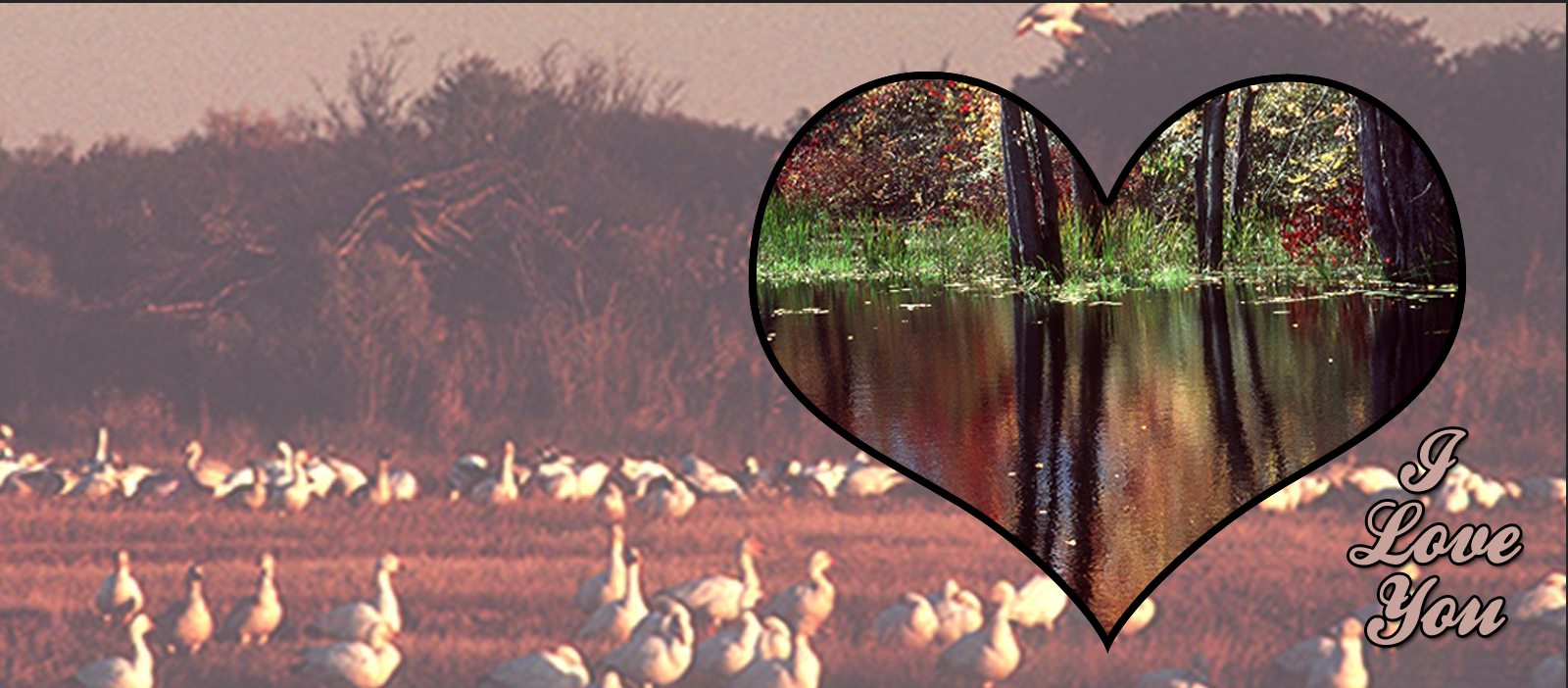 Embrace the serenity of the outdoors with this beautifully designed 11oz ceramic mug. Featuring a warm, rustic landscape background filled with a flock of grazing geese, this mug captures the essence of wildlife and tranquility. The design centers around a heart-shaped frame displaying a lush, reflective forest wetland scene, accompanied by the elegant script "I Love You." It is the perfect vessel for morning coffee or evening tea, designed specifically for nature enthusiasts, bird watchers, and romantic partners who share a love for the great outdoors.