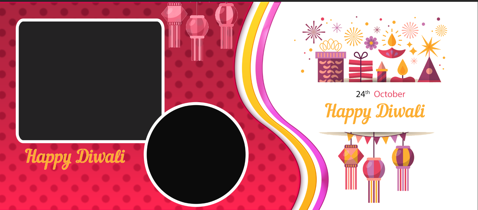 Illuminate your Diwali celebrations with our exclusive Festive Pink Lanterns Custom Mug. Designed to capture the joy and warmth of the Festival of Lights, this 11oz white ceramic mug features a vibrant design that blends traditional motifs with modern aesthetics. The left side showcases a rich pink background adorned with playful polka dots, hanging paper lanterns (kandils), and two designated photo placeholders—one rectangular and one circular—allowing you to immortalize your favorite festive memories. The right side transitions into a clean white backdrop featuring colorful illustrations of gift boxes, fireworks, diyas, and the text "Happy Diwali," making it the perfect Personalized Gift for friends and family.
