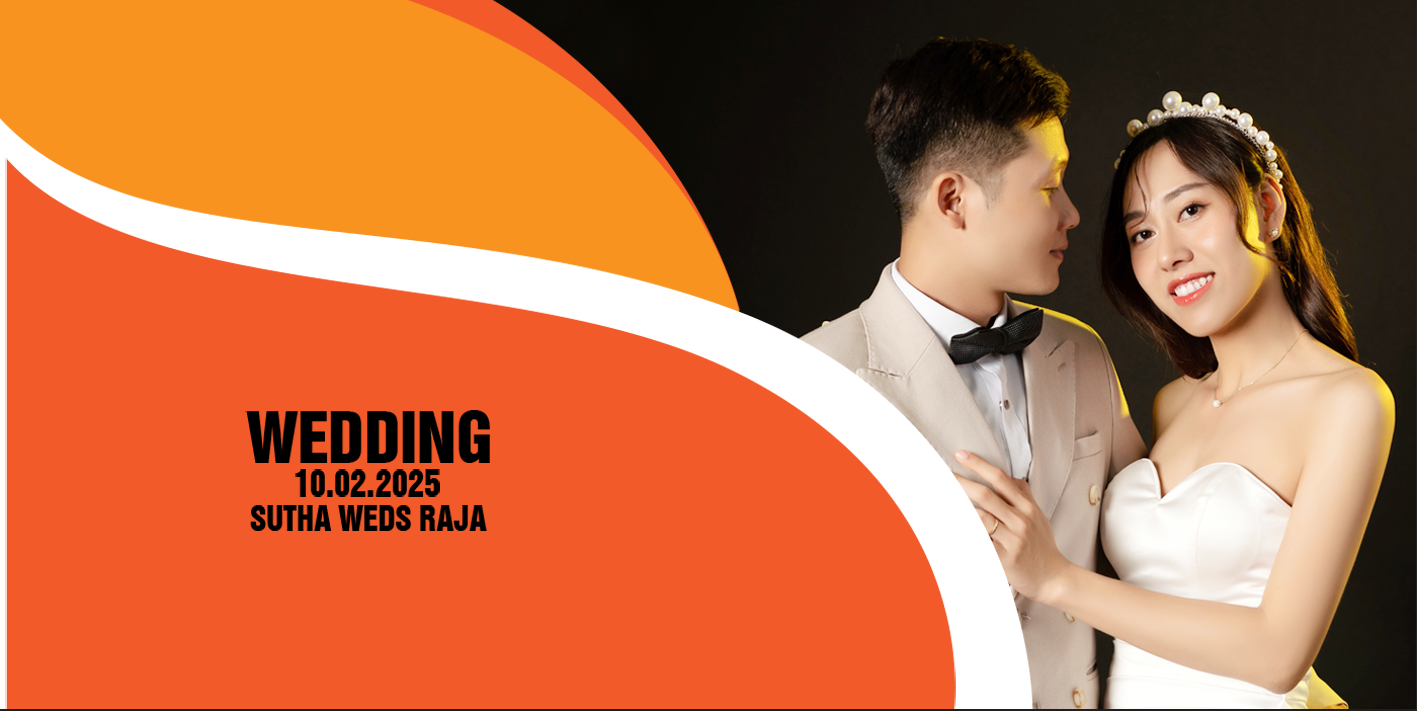Commemorate the union of two hearts with our premium Custom Mug, designed specifically for weddings and anniversaries. This 11oz Ceramic mug features a striking modern design with a bold orange abstract wave pattern contrasting against a sleek black background, perfectly framing your favorite couple photo. The personalized text area allows for names and a wedding date (e.g., "Sutha Weds Raja"), making it an unforgettable Personalized Gift for newlyweds, guests, or your significant other.