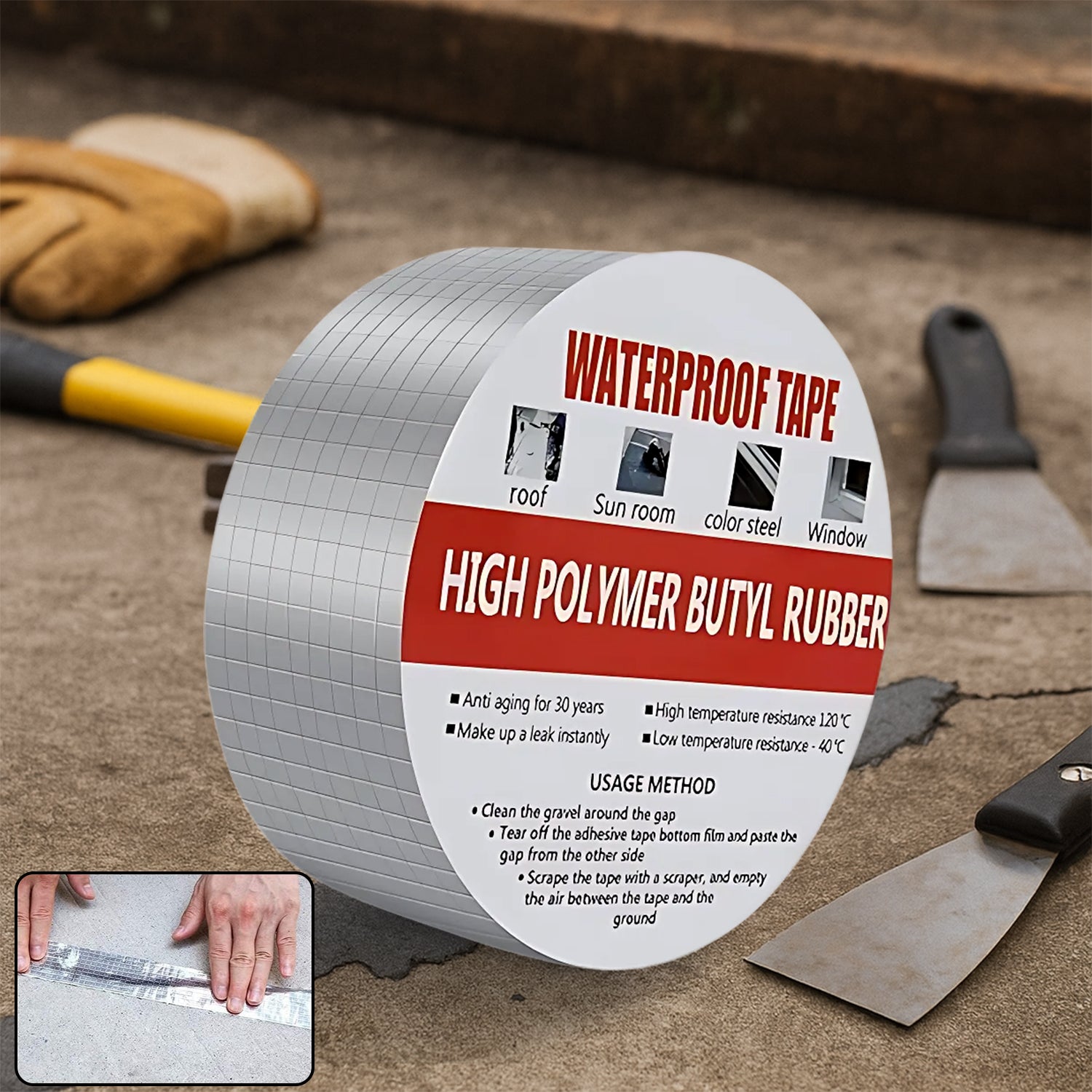 - 50mm B-Grade Butyl Rubber Waterproof Sealing Tape for Roofs and Leaks
