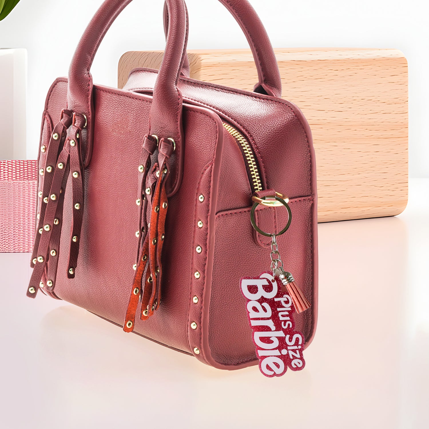 - Glitter Finish Text Keychain with Tassel Charm - "Plus Size Barbie" Design (1 Pc)