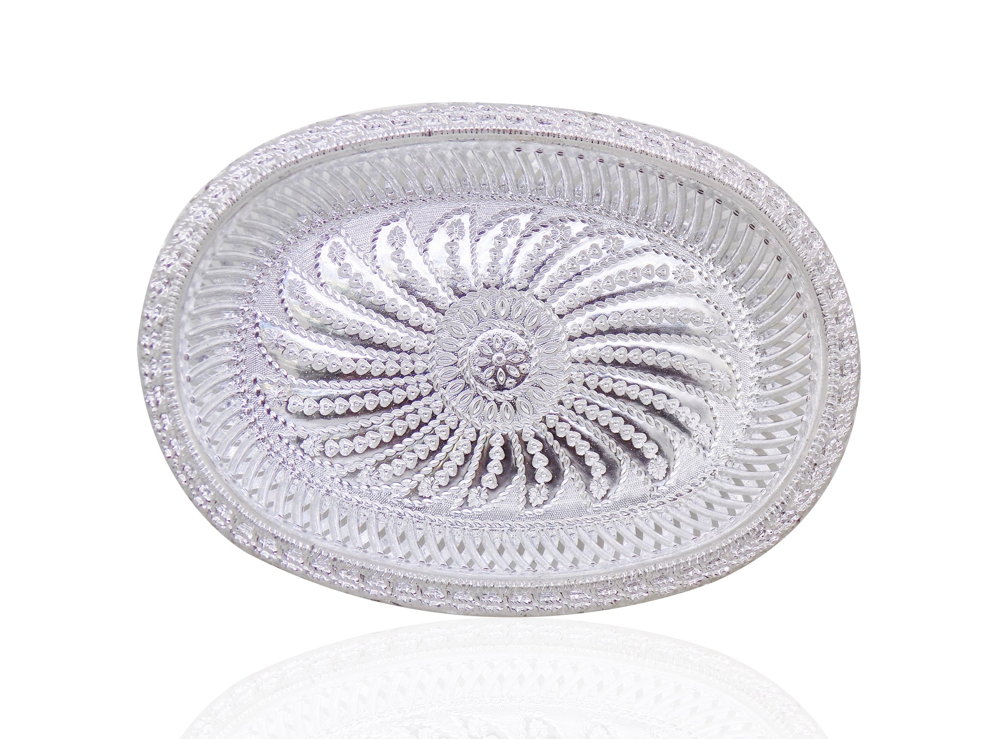 Royal Design Oval Silver Serving Tray for Gifts & Dry Fruits