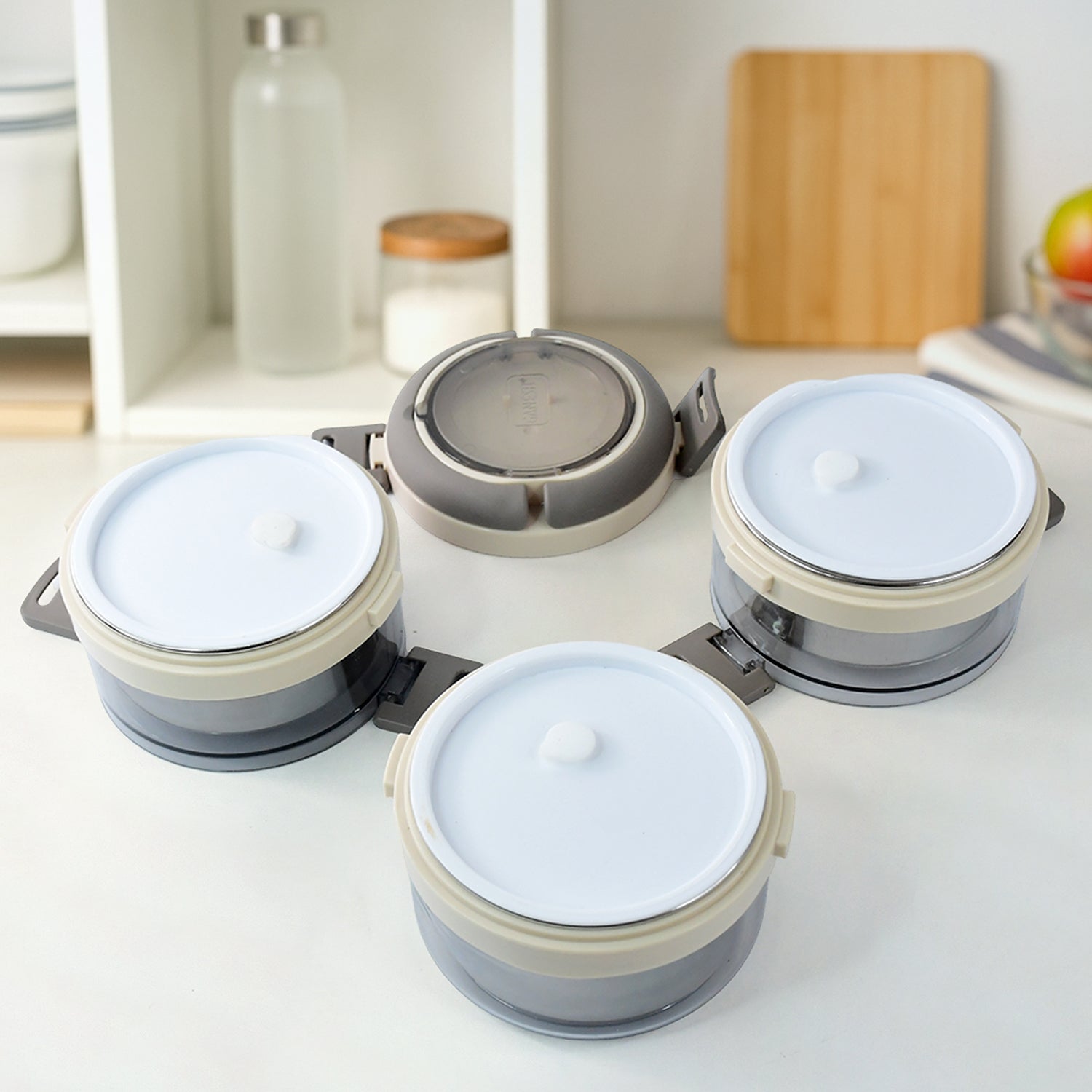 - Ganesh Steko-3 Triple Layer Stainless Steel Insulated Lunch Box Set with Spoon (1 set)