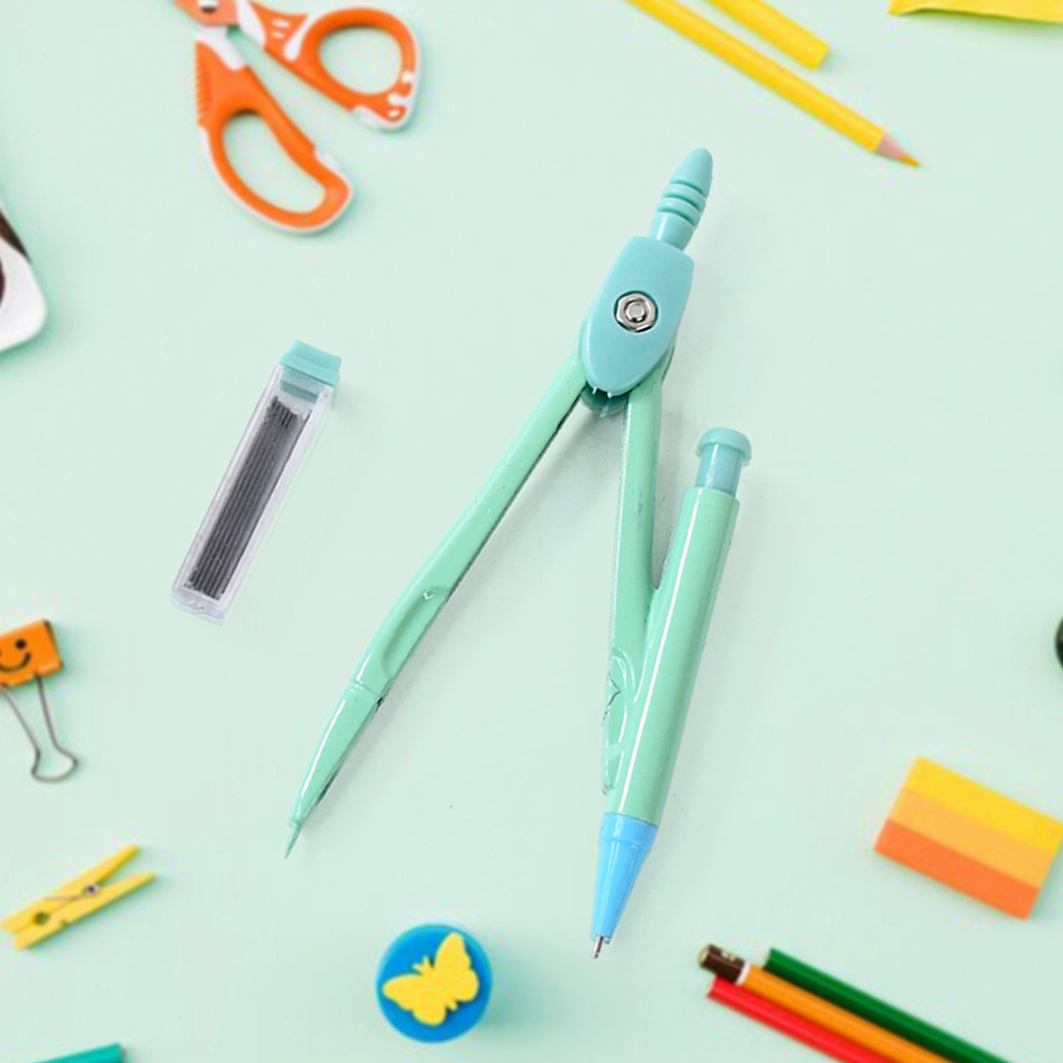 The kit features a sturdy metal compass, a mechanical pencil, spare lead refills, and a compact case to keep everything organised. Its attractive design encourages interest in geometry and makes it a great stationery addition for any student.