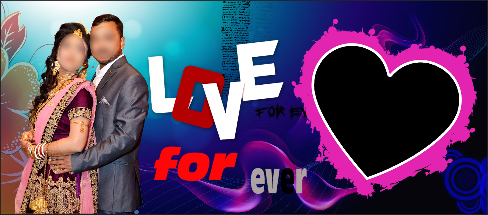 Capture the essence of your relationship with our "Love Forever" custom mug, designed specifically for anniversaries and romantic celebrations. This stunning 11oz ceramic mug features a deep royal blue gradient background adorned with artistic pink splashes and vibrant graphical elements. The design highlights a bold "LOVE for ever" typographic overlay and offers a dual-photo layout, including a prominent heart-shaped frame to showcase your most cherished memory alongside a couple's portrait slot. It is the ultimate personalized gift to keep your love story alive with every sip.