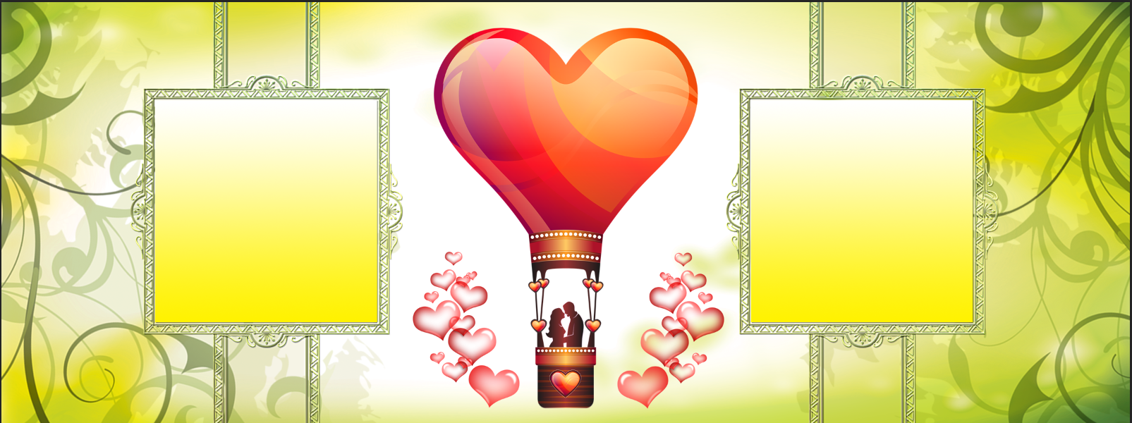 Capture the magic of your relationship with this vibrant Custom Mug designed to celebrate love's journey. Featuring a bright, lime-green backdrop adorned with artistic floral swirls, the centerpiece of this design is a magnificent heart-shaped hot air balloon. Inside the balloon's basket, a silhouette of a couple shares a romantic moment, surrounded by floating pink hearts. This Personalized Gift offers two distinct photo frames, allowing you to showcase your favorite memories alongside this whimsical illustration.