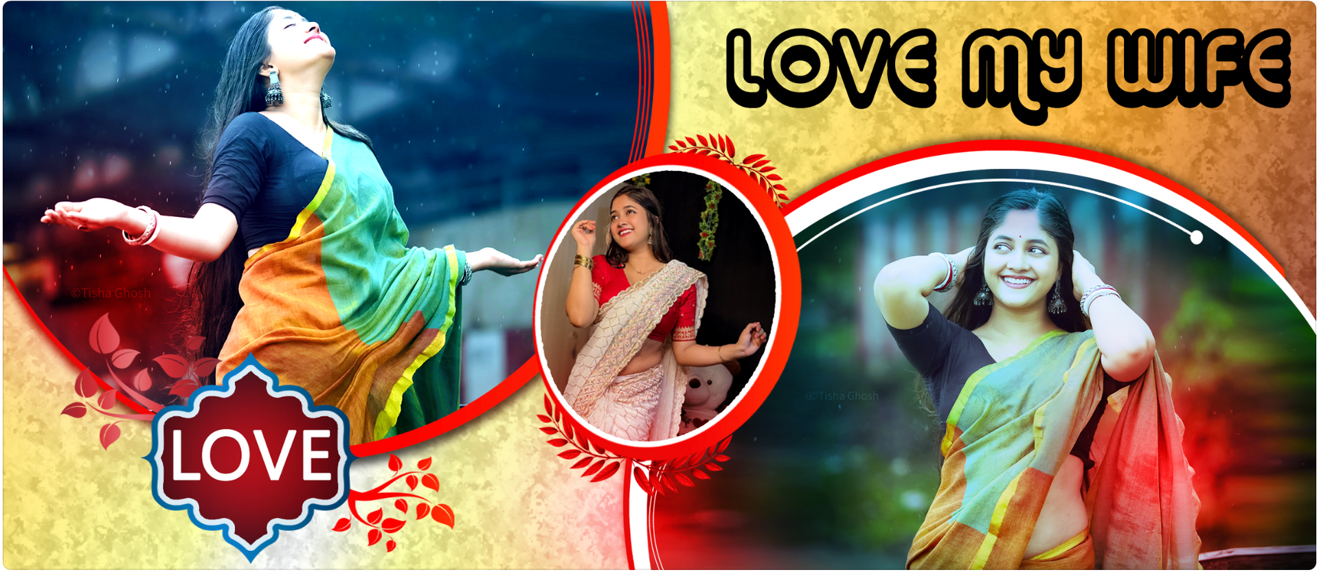 Maximize search visibility and conversion with this premium Love My Wife themed personalized drinkware. Designed for the "Love Mugs" category, this product features a sophisticated 3-photo collage layout set against a textured golden background with "LOVE" typography. This item targets keywords related to romantic gifts, anniversary presents, and personalized photo merchandise. The high-quality ceramic construction ensures long-lasting utility as a coffee mug or tea cup.