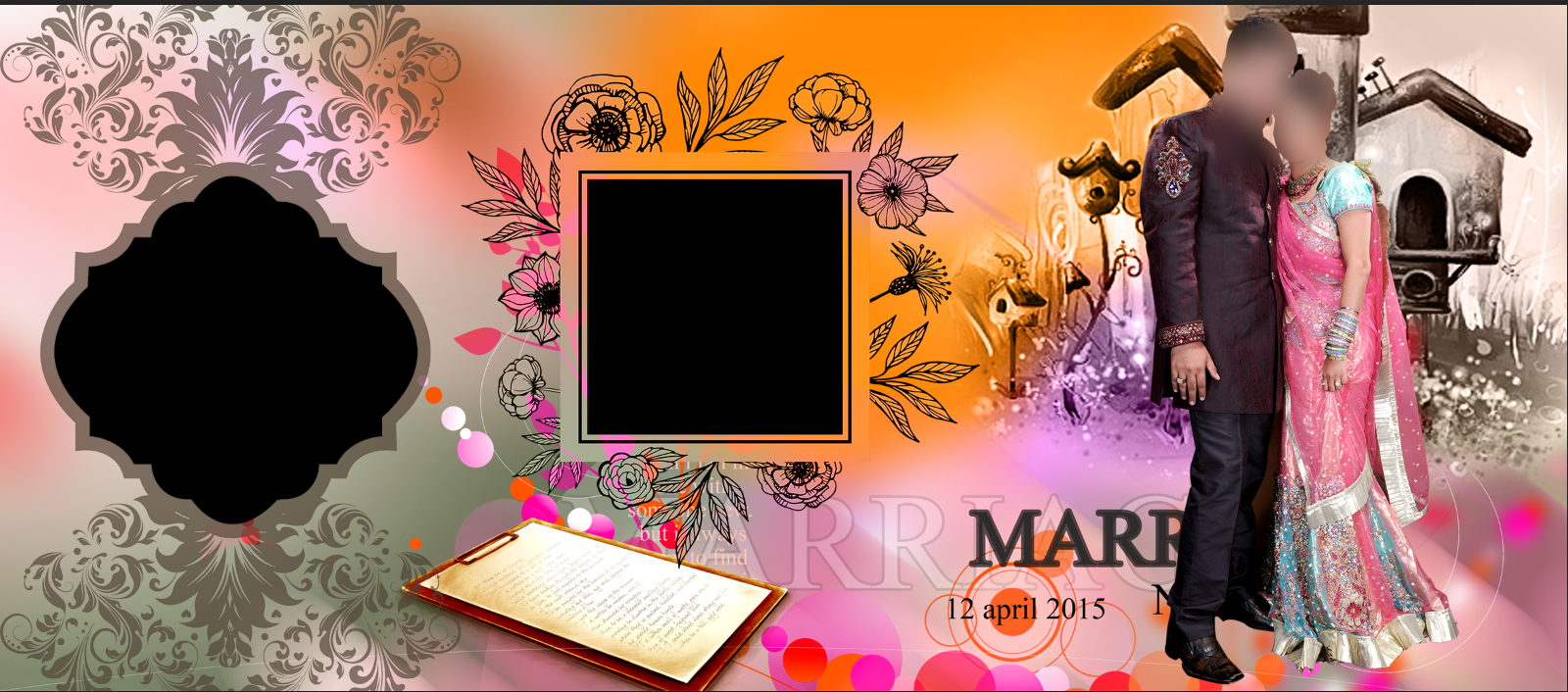 This exclusive design features a warm peach and orange gradient background adorned with intricate floral sketches and ornate damask patterns. The layout includes specific frames to showcase three distinct photos, allowing for a beautiful collage of memories. With the text "MARRIAGE" elegantly displayed, this mug transforms a simple coffee break into a nostalgic journey back to your wedding day.