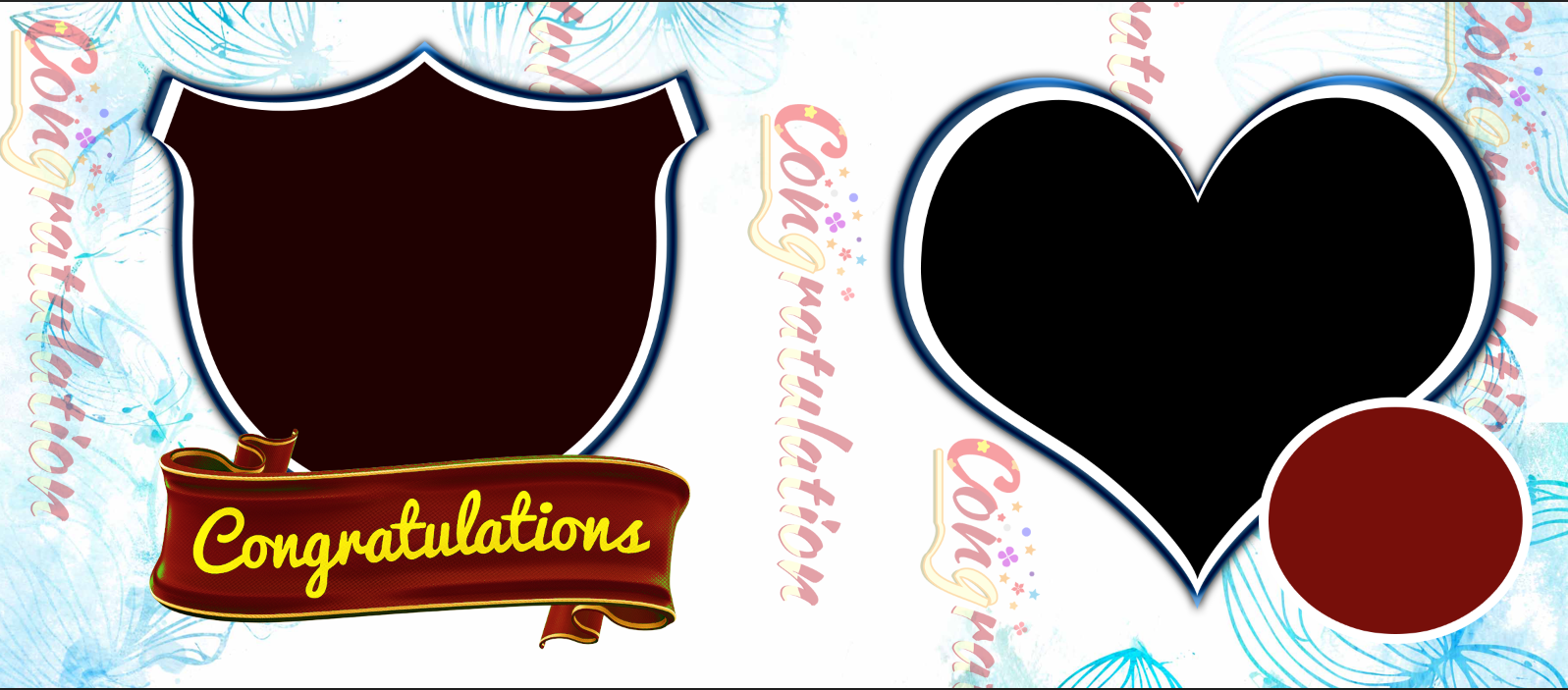 The design features a sophisticated layout including a shield, a heart, and a circular frame, allowing for a dynamic 3-photo collage. Anchored by a bold red ribbon displaying the text "Congratulations" in elegant yellow script, and set against a backdrop of artistic blue sketches, this 11oz Ceramic mug is both stylish and sentimental.